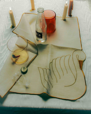 Invite these majestic swan napkins to your dinner party, and your guests are sure to be charmed. Inspired by the legend of two white swans that pecked their way into Salvador Dalí’s Cadaqués home, they bring a touch of graceful surrealism to your soirée, captivating everyone with their elegant presence.