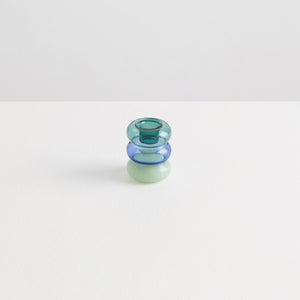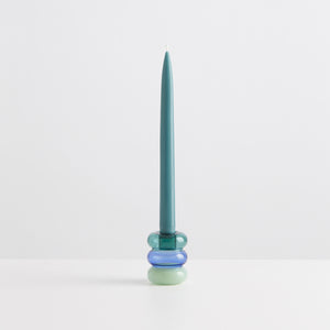 Petite Pauline is a playful stack of teal, azure and mint glass bubbles. All it needs it a candle to complete its airy silhouette! This candle holder doubles as a lucky charm, so we recommend making a wish before you light the candle that will sit on top!